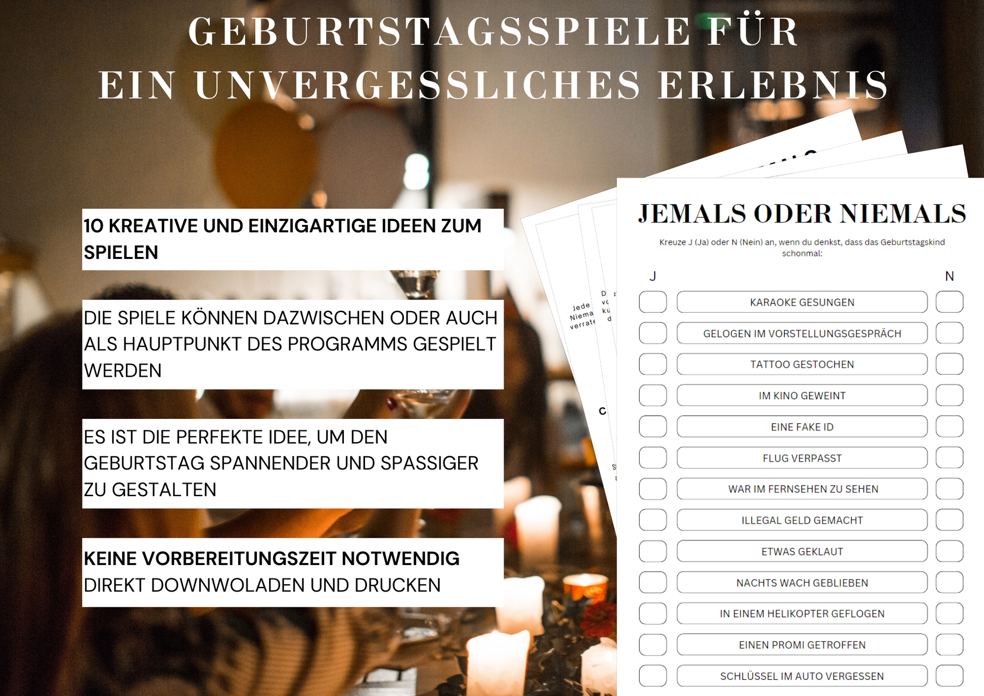 Ich war begeistert von der Qualität und den kreativen Ideen dieses Spiels. Die Mischung aus Nostalgie und Spaß ist einfach super. Die Gäste haben sich prächtig amüsiert!