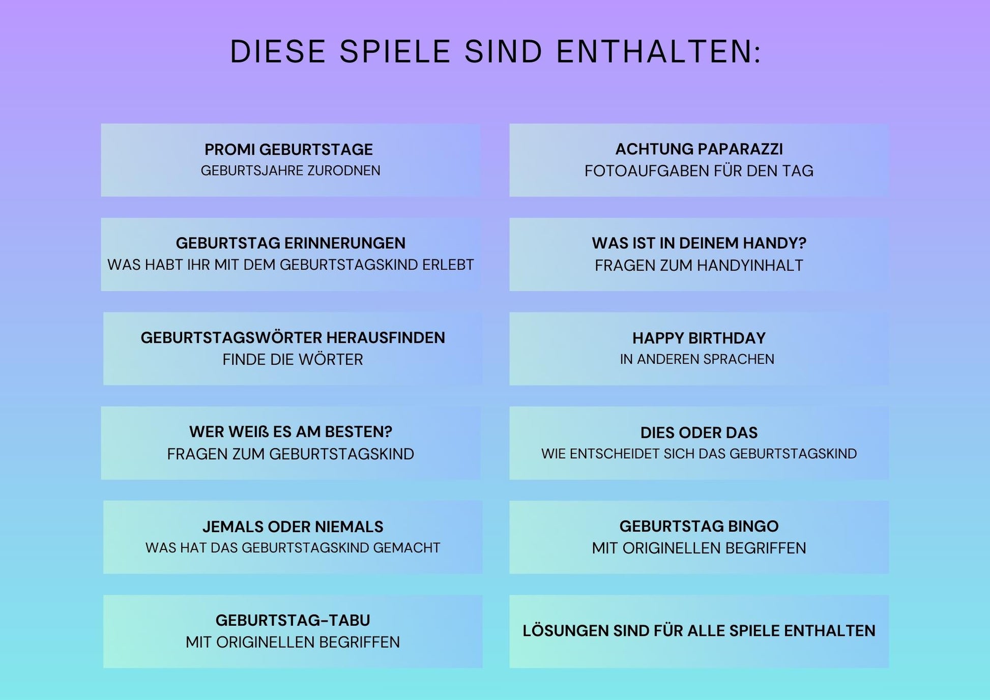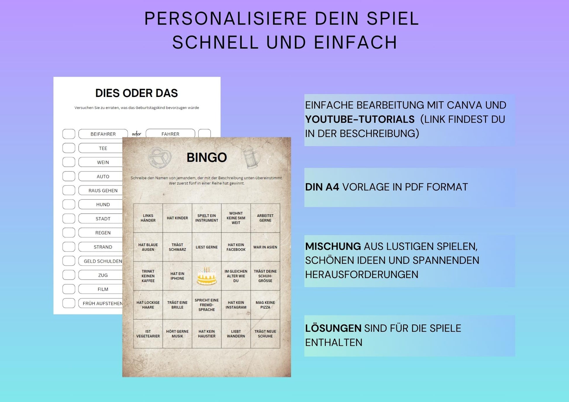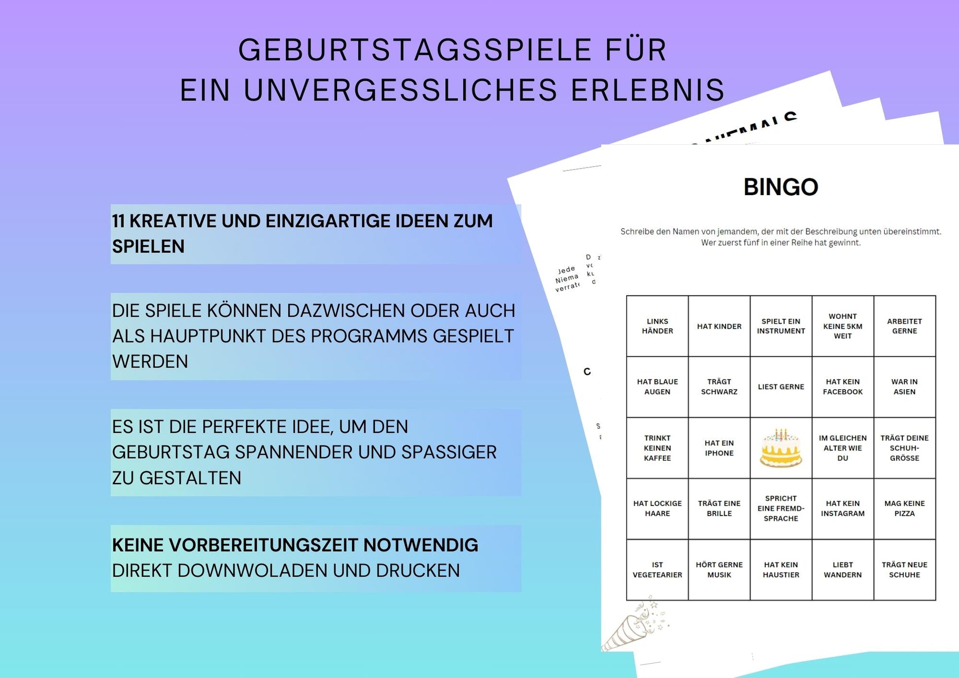 Feiere deinen Geburtstag mit einem unterhaltsamen und spannenden Spiel, das sowohl für Kinder als auch für Erwachsene geeignet ist. Ein fantastisches Partyspielpaket für jeden Geburtstag.